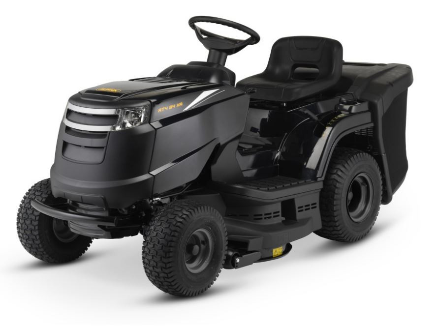 AT4 84 HA je novinkou mezi výrobky značky ALPINA-AGAMA. Jedná se o velice snadno ovladatelný zahradní traktor, který je poháněn spolehlivým motorem Loncin ST400. Dvounožová žací hlava tohoto traktoru je vybavena elektromagnetickým zapínáním a má záběr 84 cm. Tuto šířku oceníte především při skladování traktoru, kdy snadno zaparkujete i do malých prostor. Předností je také hydrostatická převodovka s plynule měnitelnou rychlostí vpřed i vzad a velká kola (18“ vzadu / 15“ vpředu), která usnadní průjezdy horším terénem. K základní výbavě tohoto traktoru patří také integrovaný nárazník, LED přední světlomety, držák nápojů. Je vhodný na menší a střední pravidelně udržované plochy do 3500m. Vyrobeno f. Stiga.