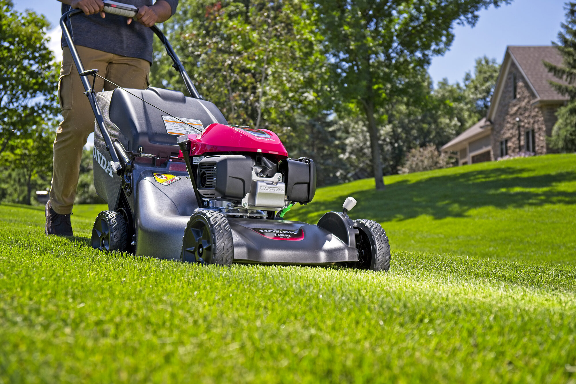Honda HRN 536 VK: zcela nový a vylepšený model zahradní motorové sekačky řady HRN s variabilním pojezdem, poháněný, mimořádně silným motorem s automatickým sytičem a se snadným startováním, bezpečnostní brzdou rotace sekacích nožů, na pevném a odolném podvozku z oceli, opatřeném nově nápravovým nastavováním výšky sekání, s přepracovaným integrovaným mulčovacím systémem s dvěma sekacími noži, se záběrem sečení 53 cm.