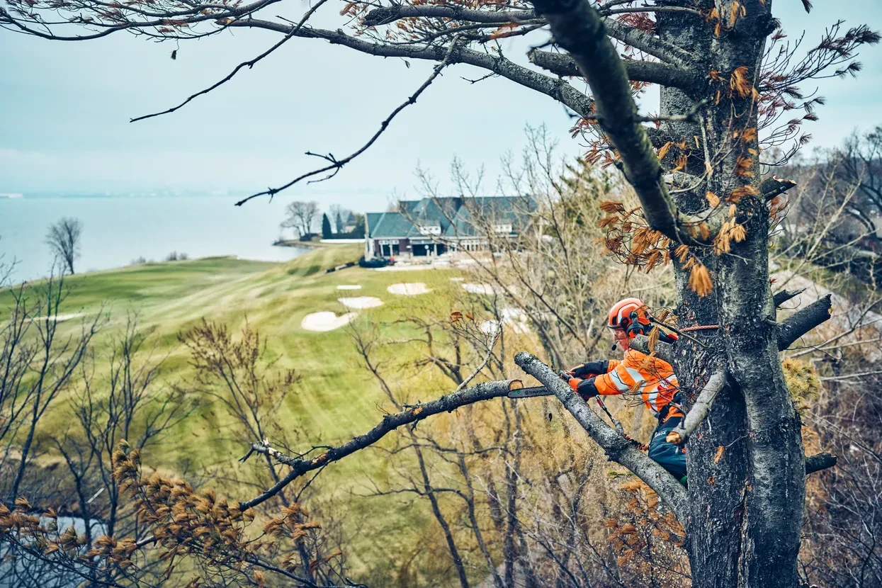 - Připevnění lana - Pevný bod pro zavěšení pily na lano usnadňuje vytažení pily do koruny stromu
