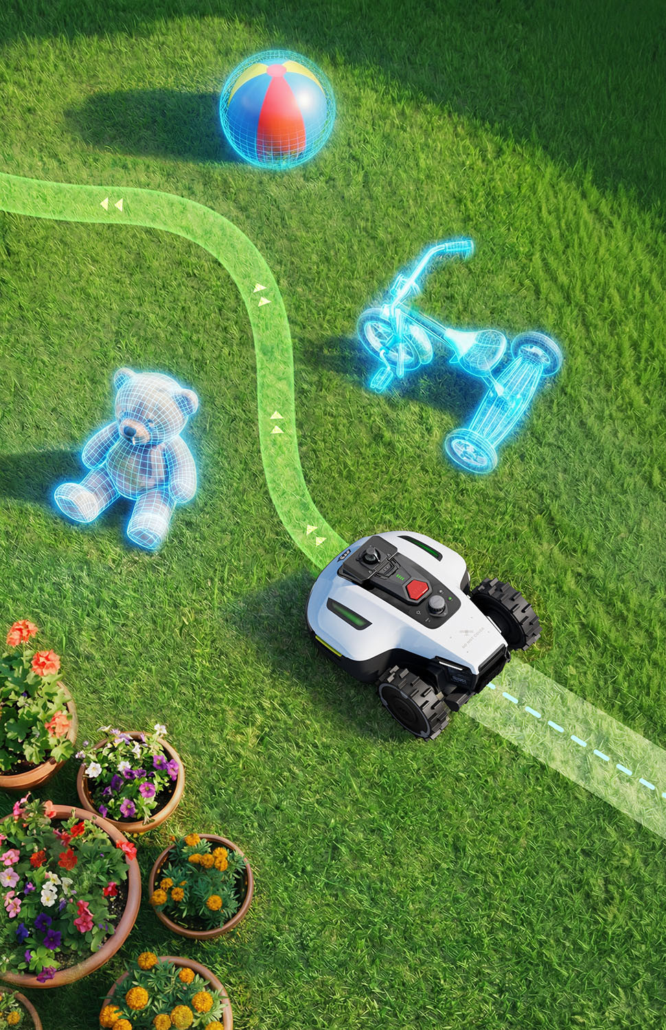 - Vizuální rozpoznávání pomocí AI - Inovovaný AI čip s výkonem 10 bilionů operací za sekundu zajišťuje okamžitou reakci robotické sekačky YUKA mini 2. Sekačka seče bezpečněji a chytřeji v blízkosti objektů a domácích mazlíčků i v členité zahradě.