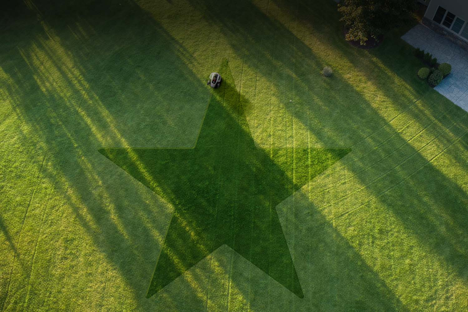 - DropMow - V režimu DropMow není potřeba žádné mapování – stačí sekačku položit, stisknout tlačítka „Mow & Start“ a sekačka začne sekat v pravidelném vzoru tvaru písmene N ve směru, kterým právě stojí. Dočasně vytvořená mapa se neukládá, což je ideální pro rychlé a jednorázové sečení