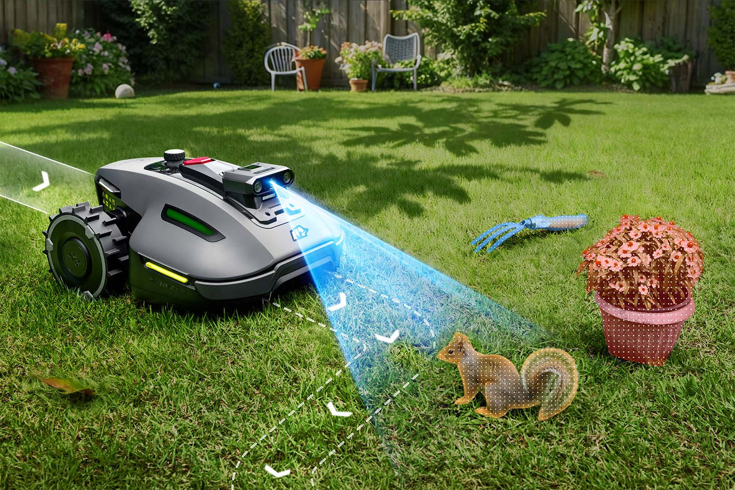 Robotická sekačka Mammotion YUKA mini 2 800 automaticky, precizně a rychle poseče trávník až do rozlohy plochy 800 m2. Díky nejmodernější technologii mapování AI Vision se třemi kamerami dokáže během krátké doby samostatně vytvořit přesnou virtuální mapu jednoduchého pozemku, a to bez složitého nastavování ze strany uživatele a bez nutnosti instalovat obvodové dráty. Vytváří 3D mapu zahrady s vysokou hustotou bodů a dokonale rozpoznává prostředí zahrady v reálném čase a umožňuje inteligentní plánování trasy sečení.