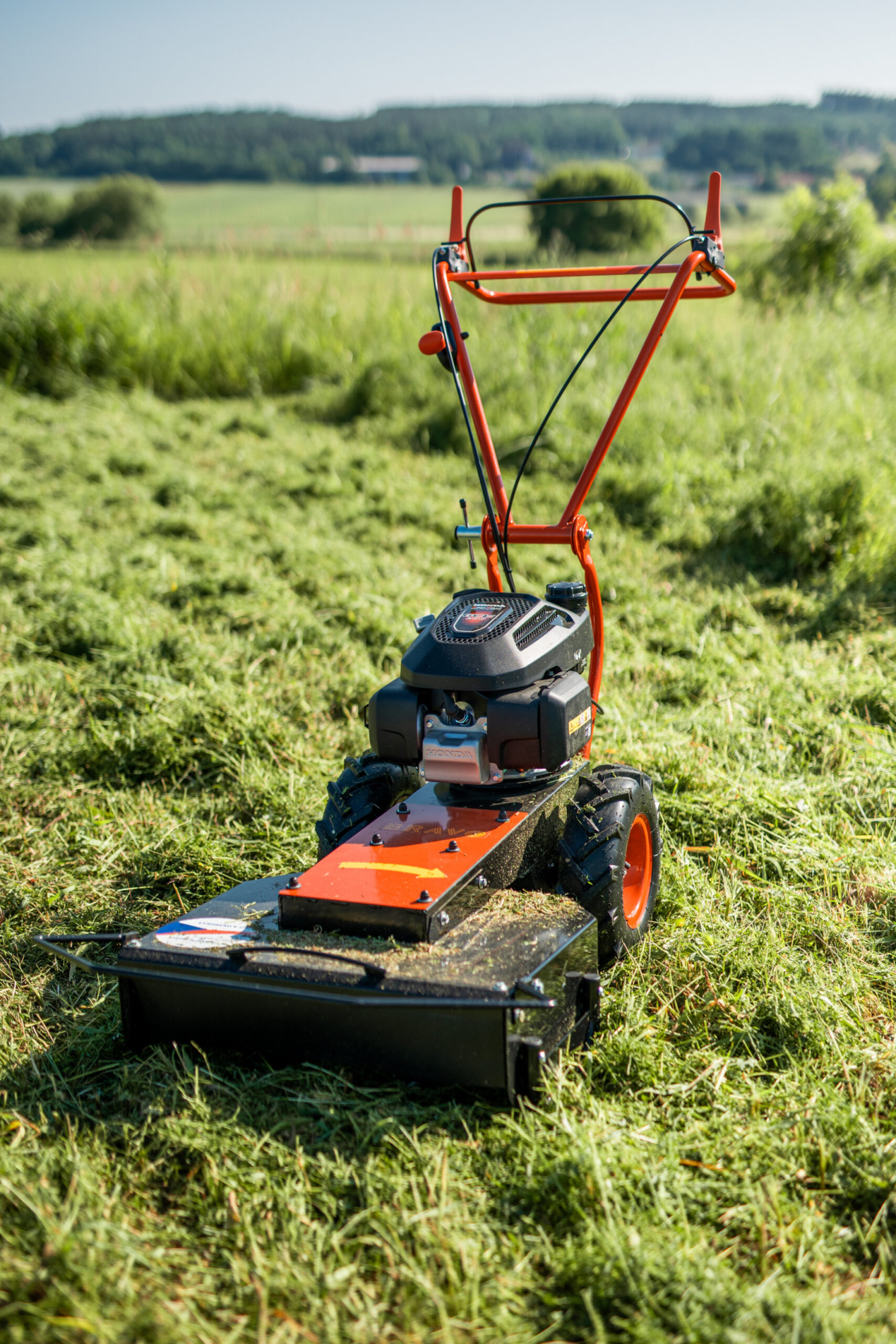 Velmi výkonný mulčovač osazený motorem Rato 225 je vhodný i pro úpravu ploch nad 1000 m2. Stroj je vybaven kvalitním nožem OREGON, zajišťující kvalitní zpracování sečeného porostu bez nutnosti další manipulace. Podpěrný rám zajištuje přesné vedení a kopírování terénu. Volitelným příslušenstvím je podpěrné vodící kolečko s regulací výšky sečení. Stroj je vybaven jednoduše nastavitelnými ergonomickými řídítky s pákou pojezdu a pákou pohonu rotoru. Foukaná kola s velkým průměrem umožňující vynikající prostupnost terénem jsou vybavena neomezenou volnoběžkou a umožňují otočení stroje na místě, čímž přispívají k vynikající ovladatelnosti. Skladnost je zaručena jednoduchým spojem, díky kterému je možné řídítka sklopit do vodorovné polohy a celý stroj je možné transportovat v zavazadlovém prostoru běžného osobního automobilu.